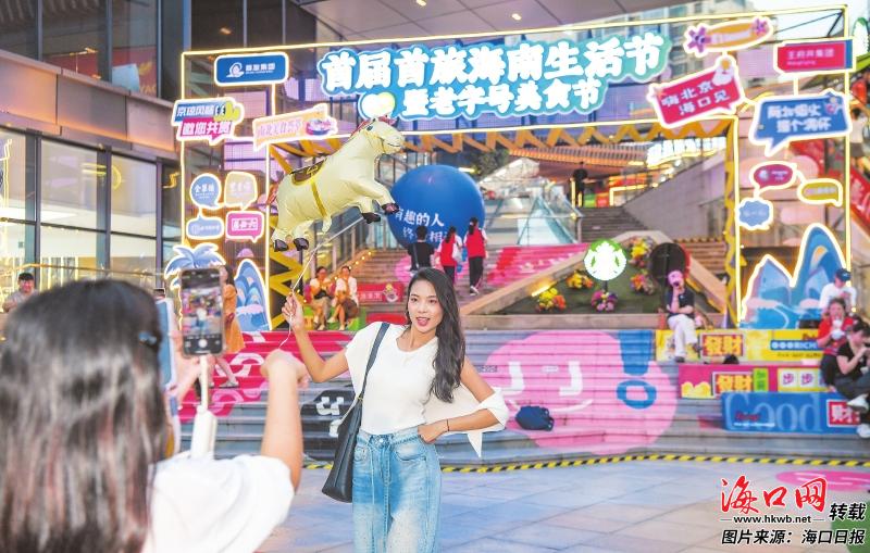 4月10日,市民游客在首届首旅海南生活节暨老字号美食节上打卡拍照。记者 康登淋 摄