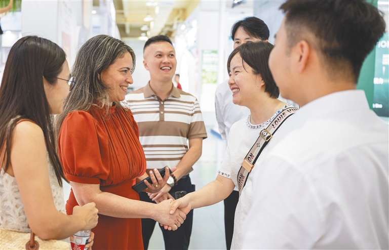 4月12日,消博会乐城分展区,宾客在交流。记者 袁琛 摄