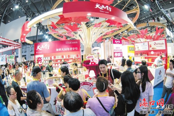 4月13日,第六届中国国际消费品博览会上,主宾国加拿大国家馆内人头攒动。记者 石中华 摄