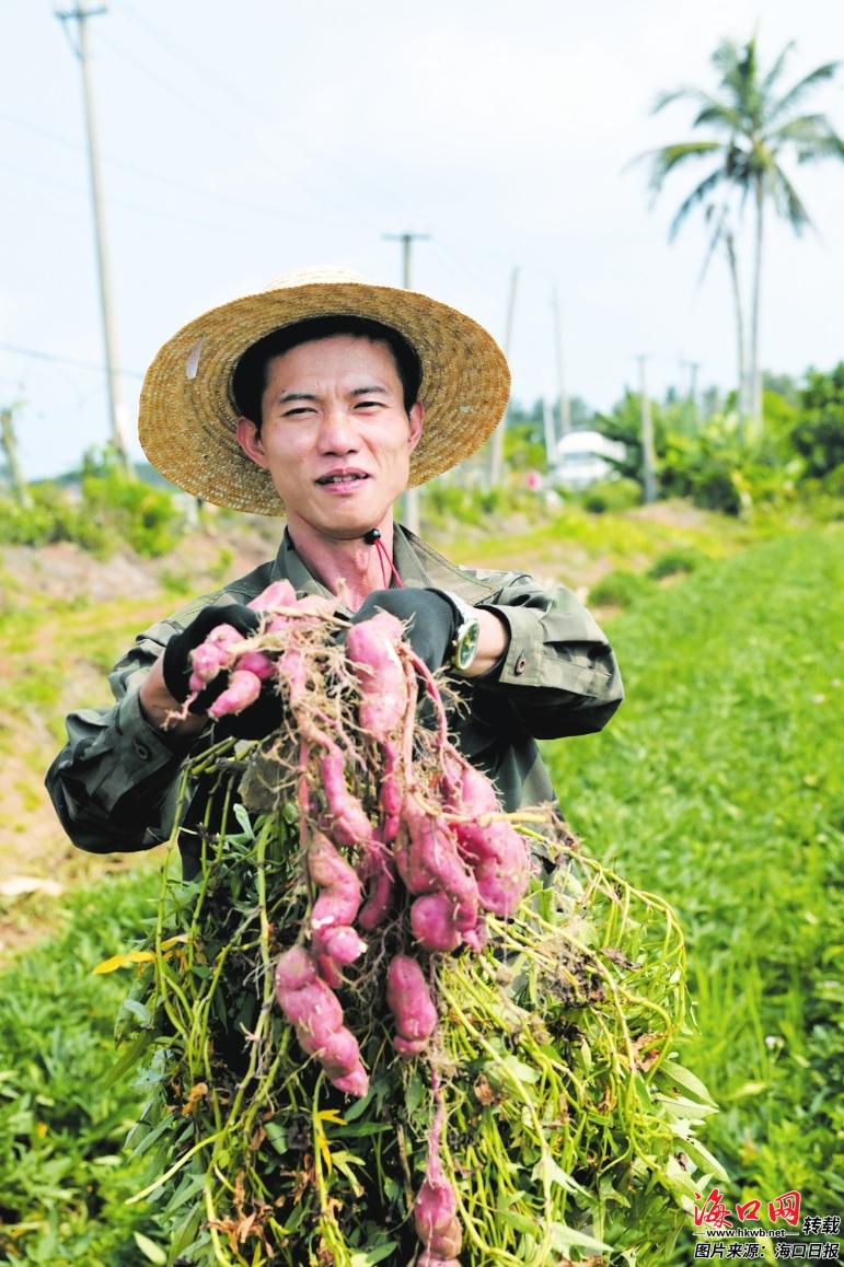 近日,美兰区演丰镇演西村“三角宁”地瓜新鲜上市,村民在田里采收地瓜。