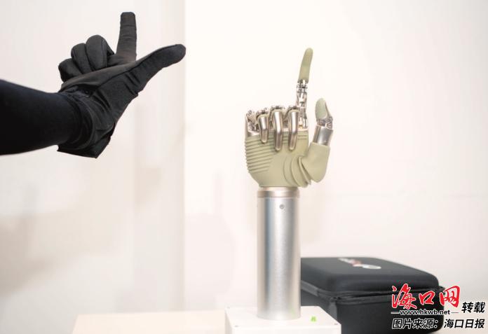 4月12日,海南自贸港具身智能机器人创业者路演大会现场展示的智能仿生手。记者 石中华 摄