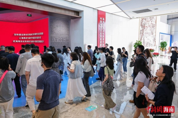 中新网海南新闻4月13日电(记者 骆云飞) 4月13日,海南海口,“开局之年看中国·开放自贸港”网络主题传播活动走进海南史志馆,参观“海南全面深化改革开放和中国特色自由贸易港建设成果展”。