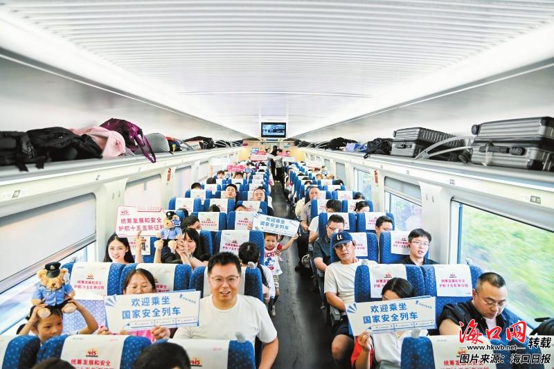当天,该主题列车从海口东站缓缓驶出,车身上醒目的国家安全宣传标识吸引了不少旅客的目光。车厢内,平面海报、视频展播、广播提醒等9种媒介形式,全方位、立体化地呈现国家安全知识。从总体国家安全观的核心理念到“12339”公民维护国家安全的义务,内容丰富、形式多样,让旅客在旅途中潜移默化地接受国家安全教育。“没想到坐高铁还能了解到国家安全知识,感觉国家安全离我们并不遥远。”前往三亚的旅客陈先生表示,这种宣传形式新颖、接地气,让人印象深刻。