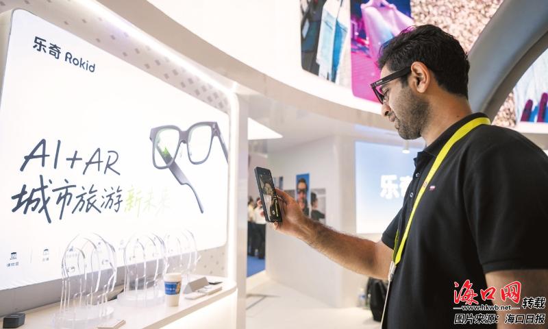 除了乐奇,在本届消博会上,华为、科大讯飞等企业均带来AI智能眼镜,价格从2000元至4000元不等。“未来AI眼镜将更轻便、显示更清晰,技术成熟后,价格会更亲民。”工作人员一边为观展者调试产品,一边说道。