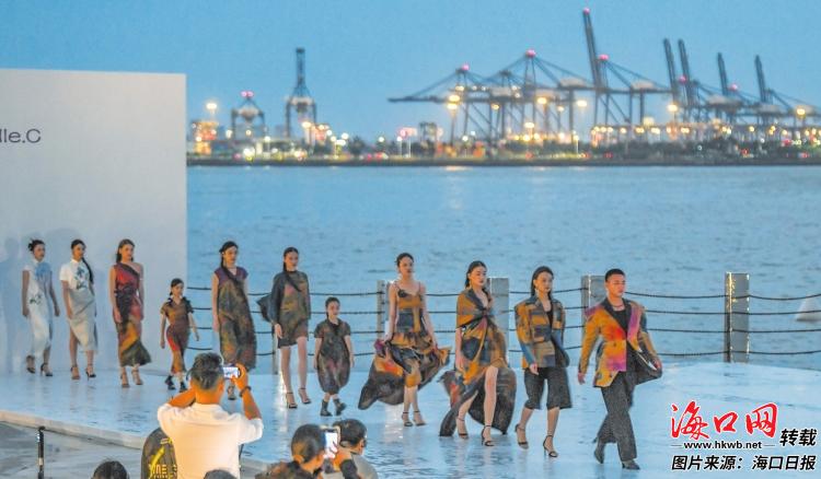 4月17日,2026海南青年国际时装周闭幕大秀在海口FUNBAY自在湾“有FUN”秀场上演。50位职业模特与“非标准模特”联袂登台,东方美学与滨海风光交相辉映、相得益彰。图为走秀现场。 记者 康登淋 摄