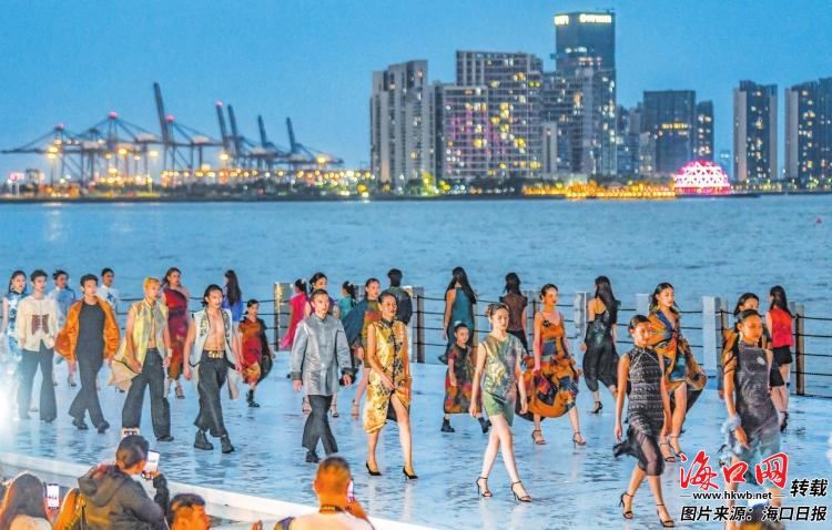 当晚7点,闭幕大秀正式开演,伴随着富有韵律的乐曲,模特们依次踏上滨海秀场,光影流转间,一件件兼具传统韵味与现代风尚的服饰依次亮相,与秀场的时尚光影相融,让这场大秀既有海岛独有的浪漫氛围感,又尽显国际时尚的精致格调,为观众献上一场视觉盛宴。