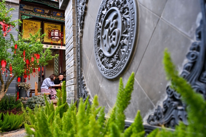 2026年3月24日,游客在会泽县白雾村的“读白书院”休闲。“读白书院”由清代楚黔会馆活化利用改造而成,是当地活化利用古建筑、推动乡村文化与旅游融合的代表性空间。云南省曲靖市会泽县娜姑镇白雾村历史悠久,曾是明清时期“南铜北运”的首站,村内古迹众多,风景如画。
