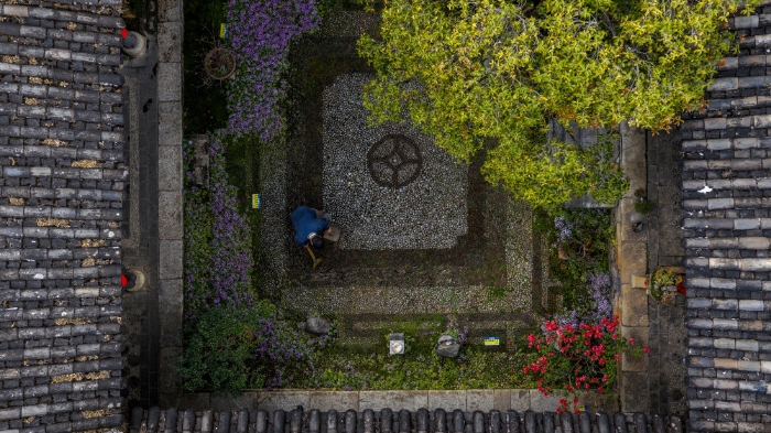 建于1875年的古宅“恒裕公”坐落在云南丽江古城五一街上,是一座“四合五天井”格局的典型纳西民居院落。丽江古城申报世界文化遗产成功后,曾有人携重金前来收购,但屋主坚持不卖不租,将其改造为民居博物馆,供游客免费参观。2016年,在丽江古城保护管理局的支持下,来自政府的拨款资助和保护修缮让这座百年老宅获得了新生,为来客保护了一方古色(无人机照片,2026年3月25日摄)。
