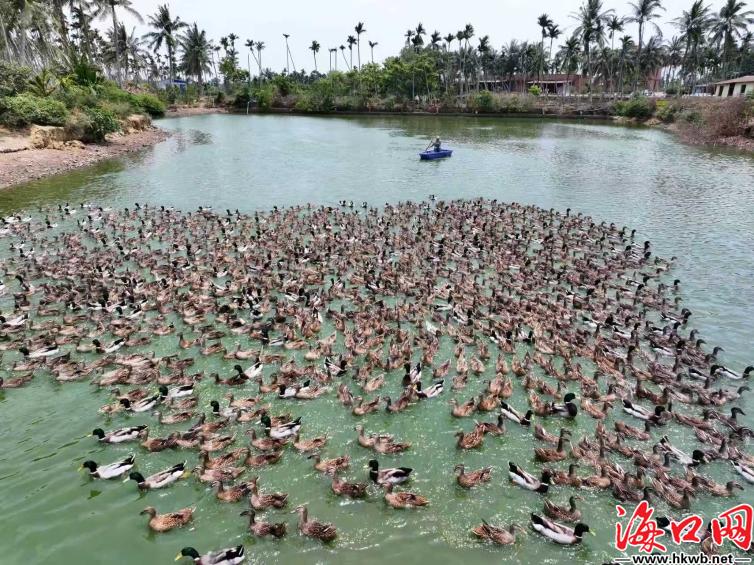 海口网4月20日消息(记者杨玲 特约记者许晶亮)4月16日上午,记者走进海口市琼山区大同村委会山口村绿头水鸭养殖基地,5亩标准化养殖区域规整有序,这里是甲子镇绿头水鸭核心养殖示范点,也是集孵化、育苗、养殖、农旅于一体的全产业链发展基地。