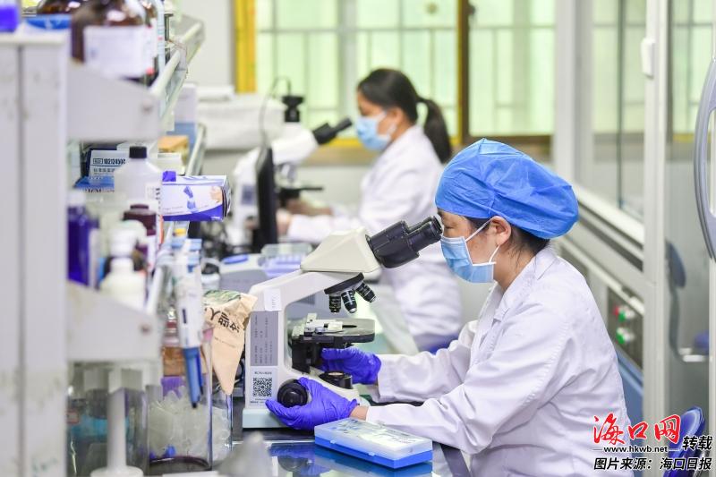 4月20日,在海口市人民医院中心实验室,工作人员正在进行相关临床实验。记者 苏弼坤 摄