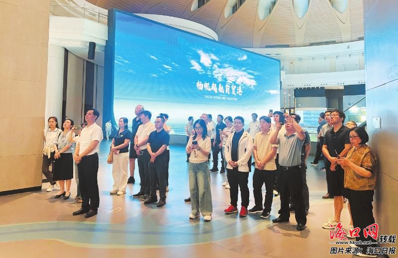 在海南能源交易大厦展厅,世界500强企业山东能源集团在新型国际贸易、跨境金融结算、数字贸易服务平台等领域的发展成果,以及全岛封关运作以来持续优化业务布局的务实举措,成为代表团关注的焦点。而鸿宝总部大楼凭借国际化设计、绿色低碳理念及完善的办公配套,成为园区总部经济集聚的重要载体,让代表团直观感受到江东新区总部经济的蓬勃活力。