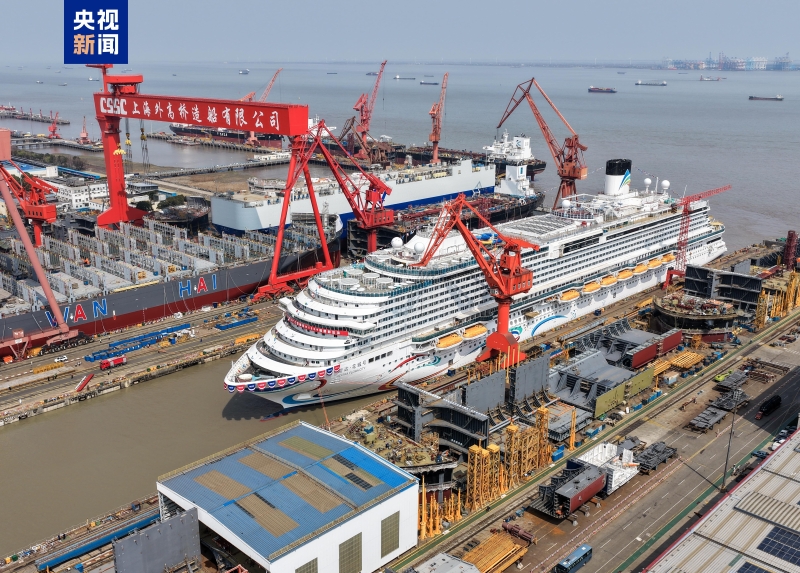 今年3月20日,“爱达·花城号”在上海外高桥造船厂顺利出坞,现已全面进入码头调试阶段。