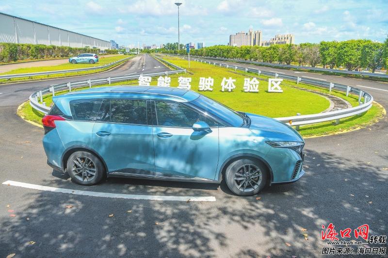 优质的营商环境让海南氢能产业审批实现“零的突破”。图为海马氢燃料电池汽车7X-H车型,在智能驾驶体验区行驶。