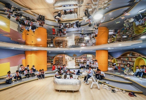 △2025年5月29日,孩子们在山东荣成新世纪城市书房阅读。