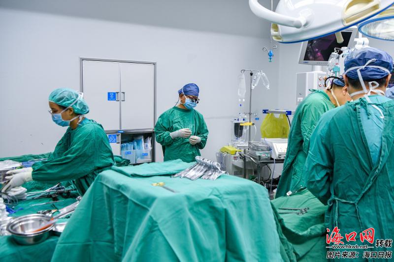 4月21日,在海口市人民医院,肖锋教授(中)正在进行手术前的指导和准备工作。记者 苏弼坤 摄