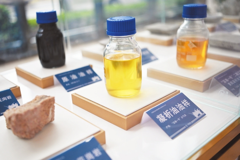 中国海油海南公司大堂内展示的油样。记者 石中华 摄