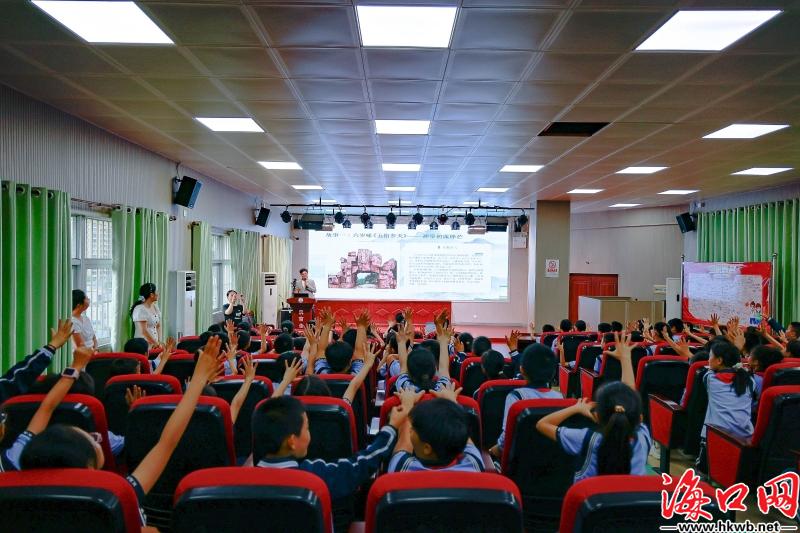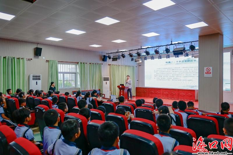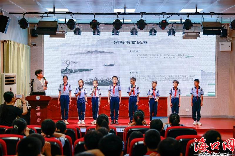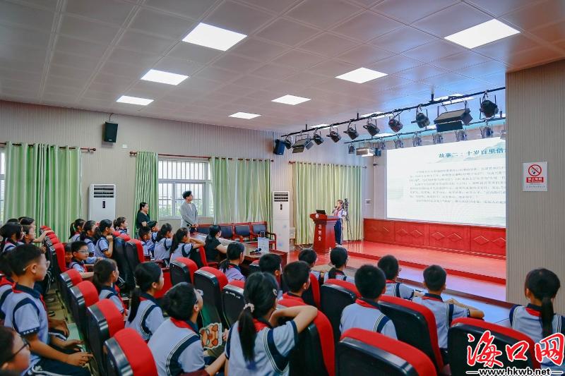 在琼山九小,中国传统文化促进会理事、全国播音主持考级测评师龙浩受邀担任活动主讲。课堂上,讲师结合苏东坡、丘濬两位与海南渊源深厚的历史名人,讲授“讲好故事”的技巧,并邀请了学生上台实操。