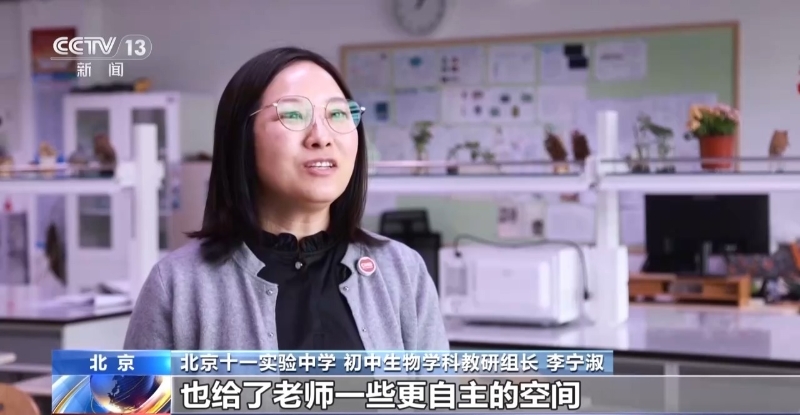 北京十一实验中学初中生物学科教研组长 李宁淑:也给了老师一些更自主的空间,让学生可以开展一些综合实践活动,有一些跨学科的项目式学习,帮助他们找到了分数以外的价值。
