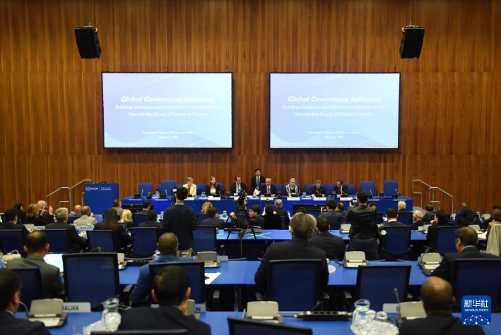 4月28日,中国常驻维也纳代表团在维也纳联合国总部举办全球治理倡议主题活动暨维也纳“全球治理之友小组”启动仪式。新华社记者贺灿铃摄