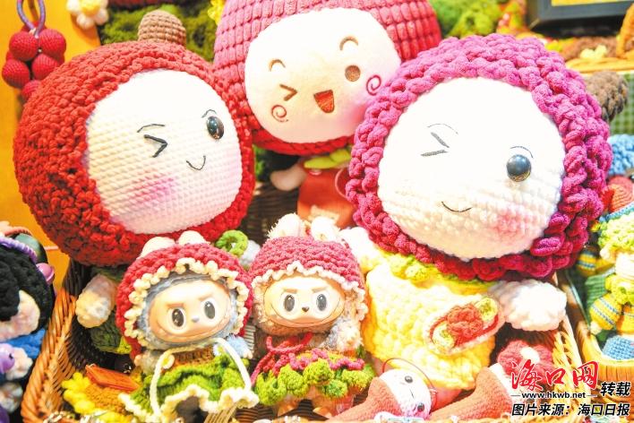 “我们带来了数十种火山荔枝手织产品,都是手工钩织完成的,其中钥匙扣最受欢迎。”在“楠老师&火山荔枝创意手织”摊位,摊主王楠向记者介绍自家的产品。记者在现场看到,不同款式的手织产品均以荔枝为核心元素设计创作,美观又实用。