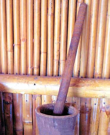 在中国内地的许多地方,都有一种制作十分复杂的将谷子磨成米的木用具,叫作“檑子”,黎族人也有自己的同类用具,是更原始的舂米的“碓窝”,大多用一段大圆木头火烧刳制而成。想想,用木碓窝舂出米,再用木甑子蒸成饭,然后是用东方特有的筷子,拨送并咀嚼着一粒粒稻种变成白米饭的整个过程—生活,就像沉香木一样,散发出一圈一圈的像年轮一般的、永久的淡淡清香。