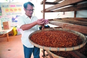 “通常,咖啡所含咖啡因过高,会让人产生心悸、焦虑等不适症状。但是‘古色咖啡’却不会。”林文定说。原来,经省质监局检测,“古色咖啡”所含咖啡因仅为0.8%,属于世界级标准。而一般咖啡所含咖啡因为3%—4%。
