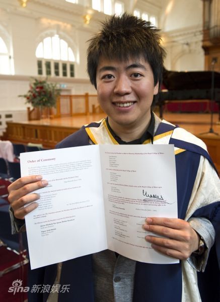 郎朗手持英国皇家音乐学院荣誉博士学位证书