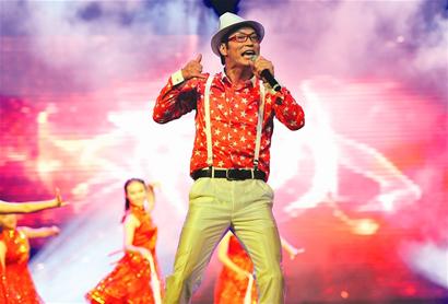 站在琴台剧院绚丽斑斓的舞台上,“老男人”汪应耀打扮很潮,花衬衣、背带裤配小礼帽,加上几分与“哥哥”张国荣神似的表情,此时面对台下上千观众,似乎更像歌星而不是一名小学语文老师。