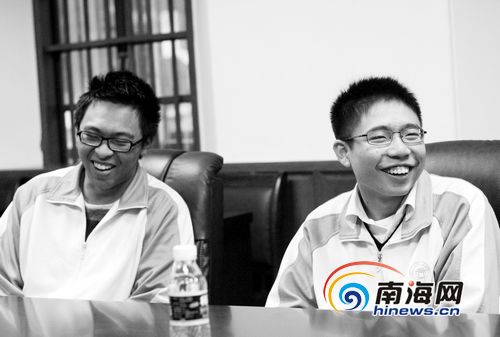 海南中学高三年级组长潘作林说,本届高三学生中,入围2012年北京大学“中学校长实名推荐制”推荐学生名单和清华大学“领军计划”的学生有9人。经过面试考核,在申请清华大学“领军计划”的人选中,刘俊鑫得分最高;在申请北京大学“中学校长实名推荐制”的人选中,王润心得分最高。