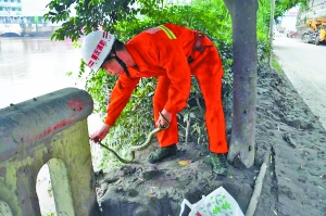 昨日中午,消防队员将这条蛇放生。通讯员 颜帅摄