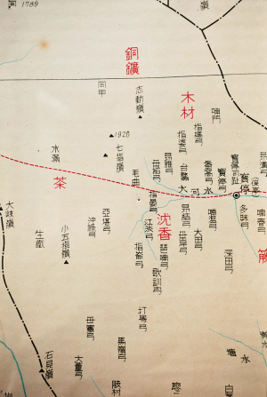 日本出版的《世界画报》中刊登的《海南岛略图》(局部),将海南各地的资源如沉香、铜矿、铁矿、木材、硼砂等标示出来。