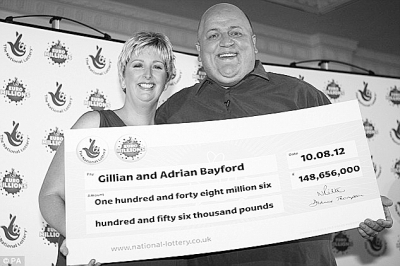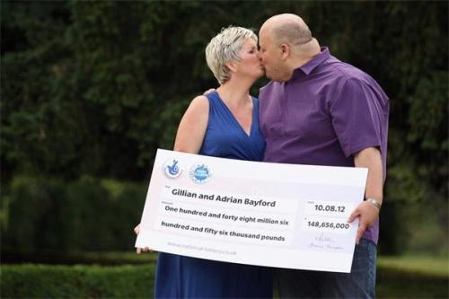 据英国《太阳报》、《每日邮报》等15日报道,最新一期的“欧洲百万”彩票大奖10日揭晓,奖金高达1.48亿英镑,这是欧洲彩票史上金额第二高的奖金。8 月14日本次大奖惟一得主终于公开了自己的身份,原来他们是现年41岁的艾德里安·贝福德及其40岁的妻子吉丽安·贝福德。据悉,这对英国夫妇结婚8年,育有两个孩子,每天辛苦工作。如此巨额奖金对于他们而言简直就是天文数字,光是每天所产生的利益就高达8000英镑,飞来横财让他们一下子跻身 “英国最富有的1000人”的行列。