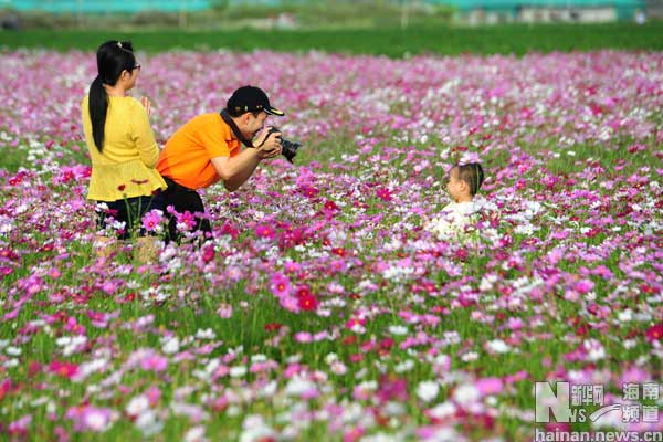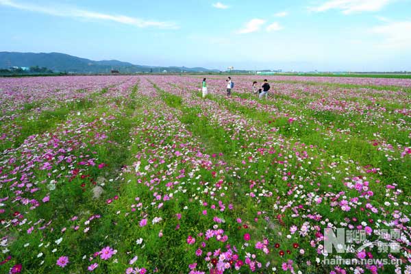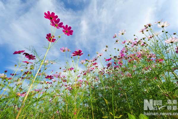 新年初始,海南三亚郊外大片的波斯菊盛开,如同一片花的海洋。