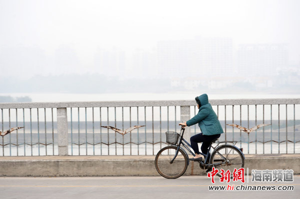 琼海市民在雾色中出行。