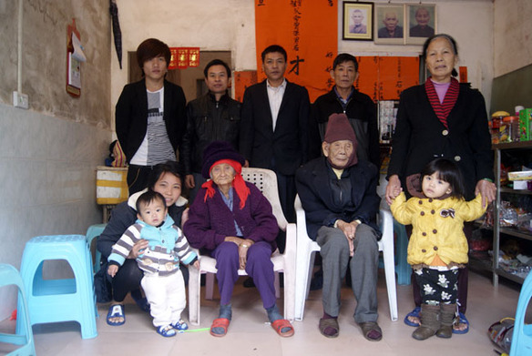 一家四代和睦美满,“现在的日子好过很多了,我年轻时,生活艰苦,挨过饿,现在生活一天比一天好,还有什么不知足的。” 要问两人有什么长寿秘诀,薛五侬用朴实的语言回答说,“要天天干活”,“一家人要和和气气”,“不管遇到多大的困难都要放宽心”,“要知足”。