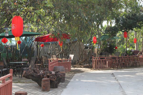 今天开业的“阿叔农家乐”建在美雅村一片原始的槟榔林中,为了保护环境,建造时没有砍伐一颗树。博鳌镇朝烈村委会主任莫泽海正坐在树下悠闲的喝着红茶,虽然只是基层的村官,他有着琼海人特有的自信和儒雅,更有着博鳌人见过大场面的淡定。 “除了农家乐、驿站、咖啡馆、我们还建造了民宿,就是村民自家的房子,拿出几间来重新装修的,虽然不是很豪华,但是很有味道。”他微笑而自信说着。相比高星级酒店的大气辉煌,美雅村的民宿显得格外清新,村在田中,湖在村中,依湖伴林,古树浓荫,放眼望去,绿意浓浓,恬静优美的田园风光尽收眼底。而“三嫂旅馆”、莫叔旅馆“的名字中也透露着淳朴和热情的味道。120元/间的价格相当的亲民,就算是春节也只需150元,所以早早就被预定一空。