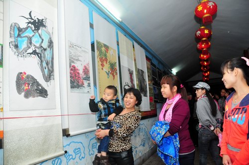 昨日,府城三角公园的长廊内展出的“元宵节书画摄影作品展”吸引了赏花灯的游人,尽管在公园外舞龙舞狮的敲锣打鼓十分热闹,但记者看到不少人却将脚步停留在一幅幅惟妙惟肖的书画作品前仔细品味。 在书画作品前安静认真欣赏的市民林先生告诉记者,虽然他不是特别懂得书法,但是平日里也喜欢欣赏,能在元宵佳节欣赏优秀的书法作品,感觉很不错。一对年轻的情侣说道,“这些作品很好看,就像赏花灯一样。”