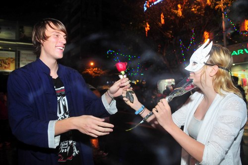 虽然下着毛毛细雨,昨日晚7时30分许记者来到海瑞故居时,这里的许愿树前已经站了很多人,工作人员正在免费发放卡片,让许愿的人在卡片上写下自己的愿望,然后将卡片挂在许愿树的红绳上,以此希冀新的一年心想事成。工作人员介绍,虽然今天天气不是很好,还是有很多人冒雨前来。记者注意到,在许愿树前许下愿望的有带着孩子的妈妈,有穿着校服的学生,有手牵手的情侣,还有来自国外的客人。Doris是英国人,来海口游学,能说简单的中文。她说,跟着同学们来参加换花节,对这个许愿树特别感兴趣,但只能用英文写卡片,希望梦想一样能实现。