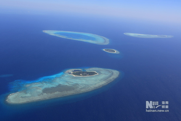 这是空中鸟瞰西沙诸岛,最近处的岛屿为珊瑚岛(5月20日摄)。