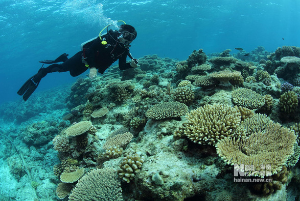 这是西沙珊瑚岛附近的珊瑚群(5月24日摄)。