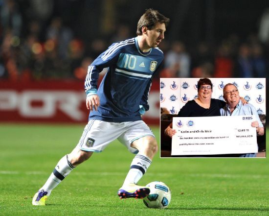 2011年7月,苏格兰中部的韦尔夫妇,他们中得1.6亿英镑(约16亿人民币)的巨奖!夫妇二人当地的一支业余联赛球队提出搞笑式的请求,希望两位暴发户出钱资助该队收购世界头号球星梅西以及曼城[微博]队长特维斯。