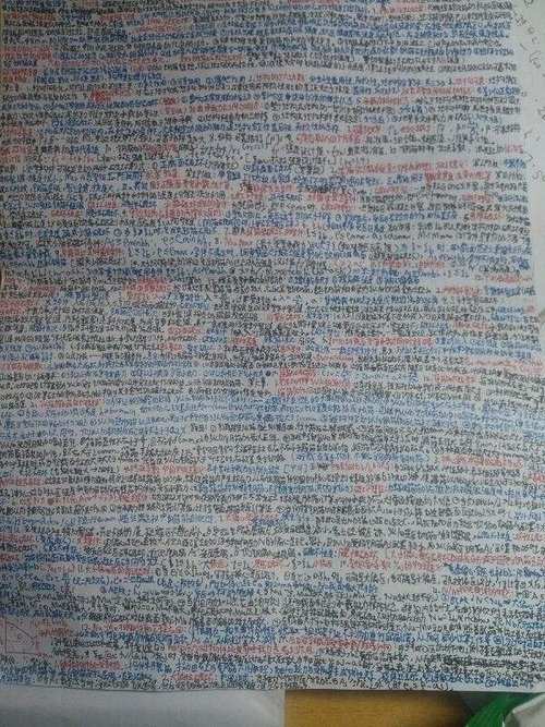 所谓“半开卷”考试,就是考生可以带一张A4纸进入考场,纸上可以抄录一些重点,不管多少,只要不超出A4纸的范围,但是前提是必须手写。“用了整整2天,一面纸5千字,两面A4纸上一共写了1万多字!”该校纪同学对此表示无奈。