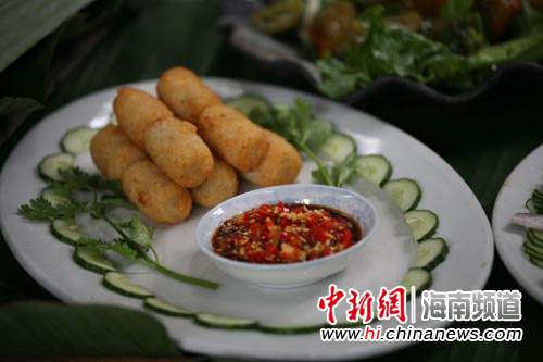 在众多特色菜中,记者对黎族创新型菜品“冰火鱼茶”的制作者周浩进行访问,他表示:“平时比较喜欢做菜,但是自己进行菜品的创新还是第一次,经历数天的实践研究,得到朋友成军的帮助与支持,在传统鱼茶的制作基础上试验多次,将鱼茶炸过后,再加入酸辣调料精心调制,不仅口感酥爽而且符合大众口味。”