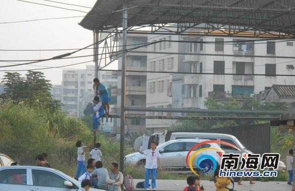 建筑工地成孩子临时“游乐场”。(南海网实习生李梦瑶摄)