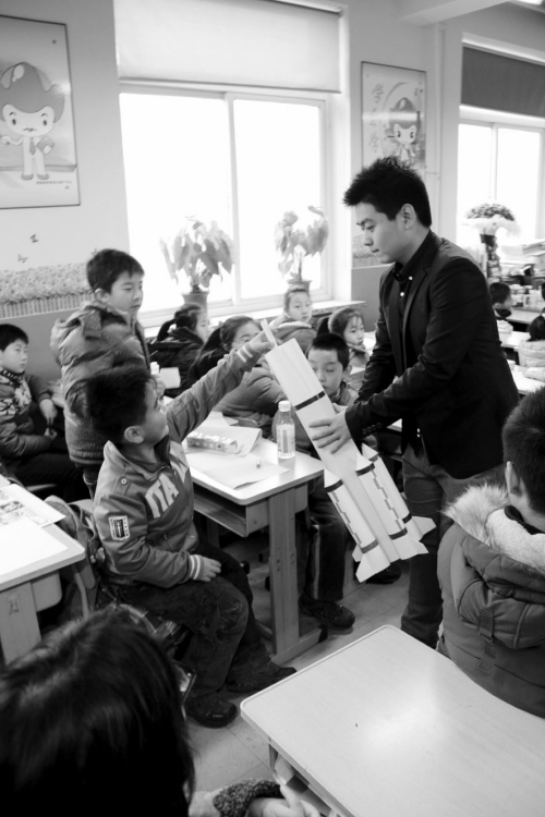 “我想当一名军人,保卫国家主权不受侵犯”、“我想当环保专家,治理‘雾霾’,提高空气质量,让老百姓呼吸上新鲜空气”……1月16日,皇姑区昆山二校三年级部分学生召开“畅想中国梦”主题班会,与以往不同的是,主持班会的是沈阳药科大学社会实践小组的大学生。大学生与小学生现场交流自己的梦想,他们一起看动画片、一起在画纸上画出梦想,并将写给未来自己的信装在“时光火箭”里。