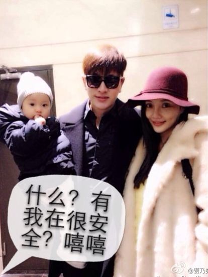 1月16日晚,贾乃亮在微博晒出与女儿、老婆李小璐的合影。夫妻二人一个黑超遮面,一个贵妇装扮,酷劲十足。而小宝贝则在爸爸的臂弯中吃着手指头,十分可爱。