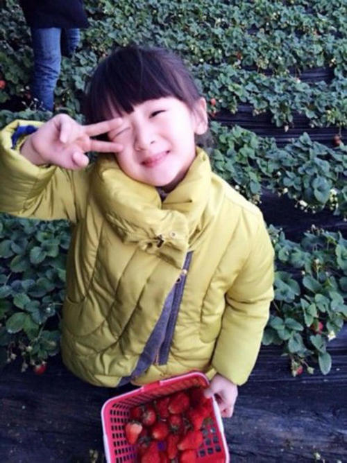 2月3日晚,田亮在微博晒出女儿森碟采摘草莓的照片,森碟一手拿着自己的劳动成果,一只手比二卖萌,十分可爱。