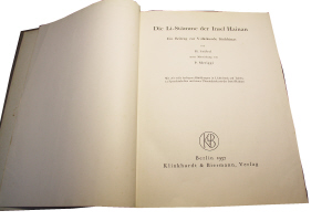 《海南岛民族志》,德文版原名《海南岛的黎族》,1937年于柏林出版。该书出版后,受到日本政府侵华战争的需要推动,由清水三男翻译成日文、经由平野义太郎编辑,于1943年由东京亩傍书房出版。因为各种各样的原因,中文译本至今尚未正式出版。1964年6月该书经由中国科学院广东民族研究所以日文本为基础翻译,中文名称定为《海南岛民族志》,内部发行,从这个译本的前言部分来看,主要是供批判研究之用。