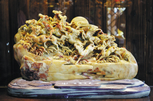 “青田石的最大特点就是一块石头上有多种颜色,有时达几十种,色彩丰富,花纹奇特。”麻双鸣向记者展示了他喜爱的一尊尊作品。