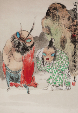 刘大为:在作品中为人兽鬼神创造性地点上红、黄、绿或者是蓝色的眼睛,是关玉良墨彩作品中的点睛之笔。这是作品灵性的体现,更是艺术家对生活、对人性、对人类、对社会的理解。